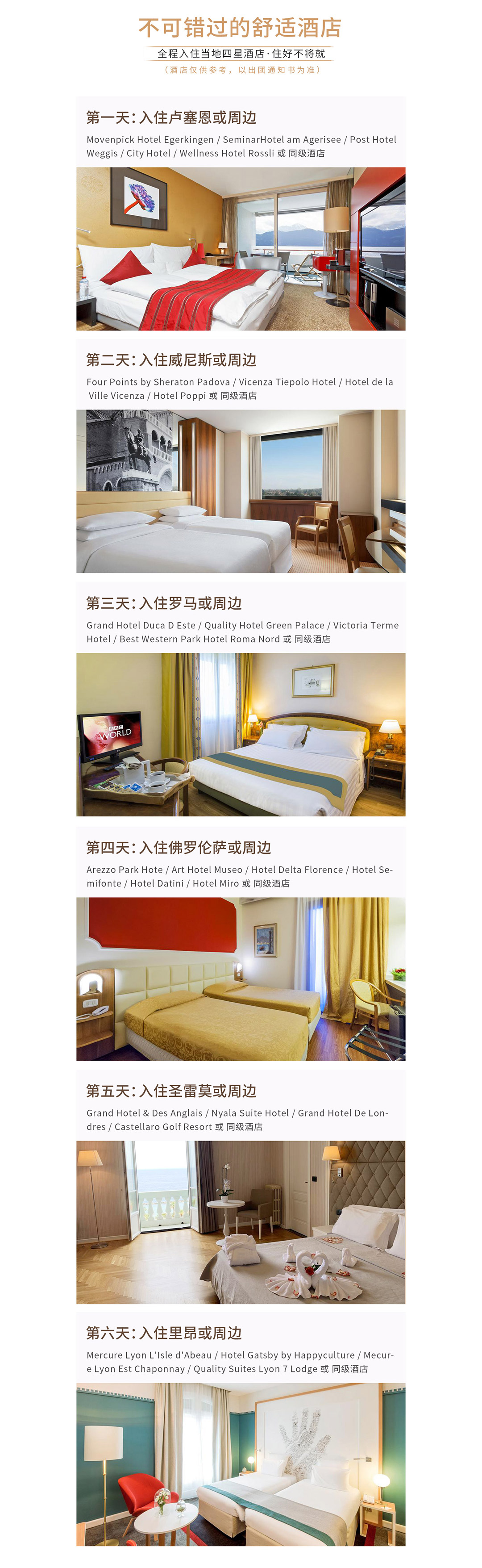 ③由于欧洲各酒店早餐时间段各有不同,请务必按照酒店通知时间提早至餐厅用餐,避免因个人原因导致的较迟抵达而没有足够的餐食供应的情况。