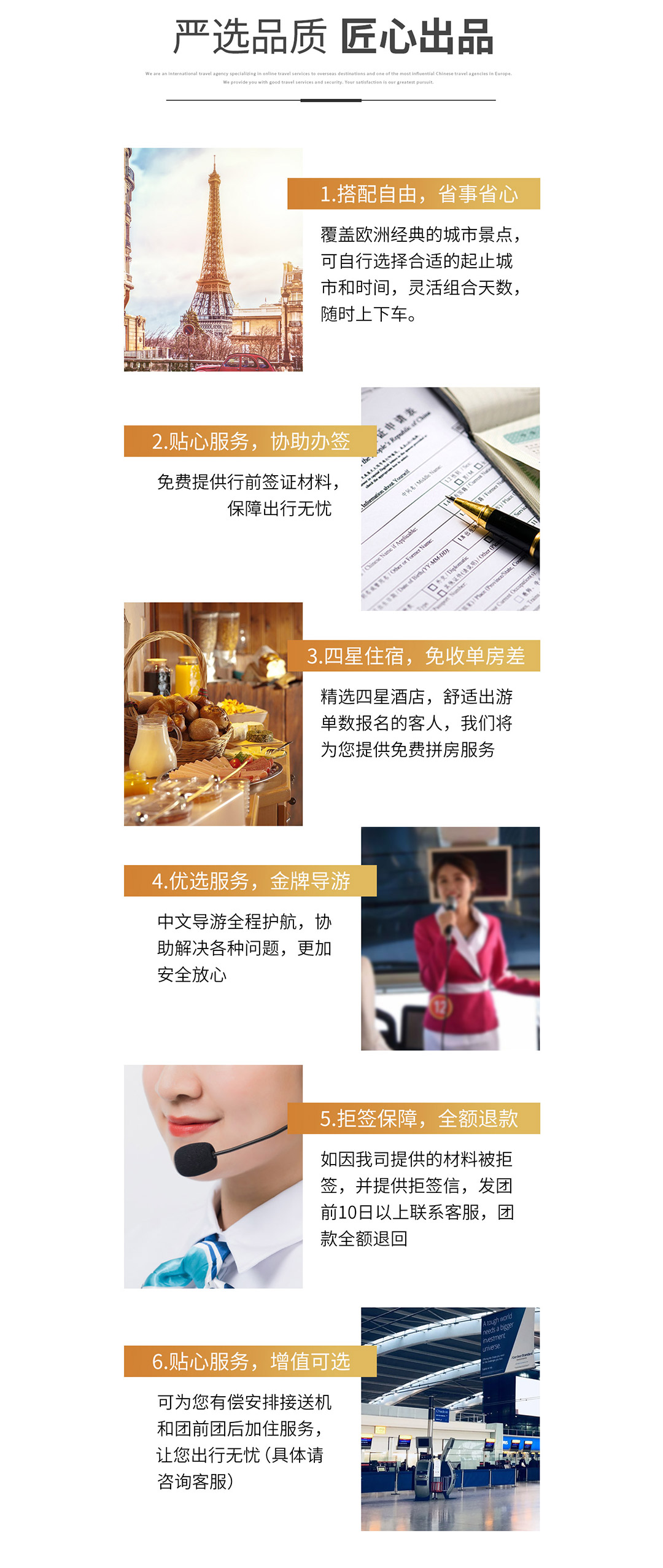 1.酒店早餐:欧洲习惯吃简单的早餐,酒店供应的早餐通常只有面包、咖啡、茶、果汁等,我社安排的酒店均含自助早;