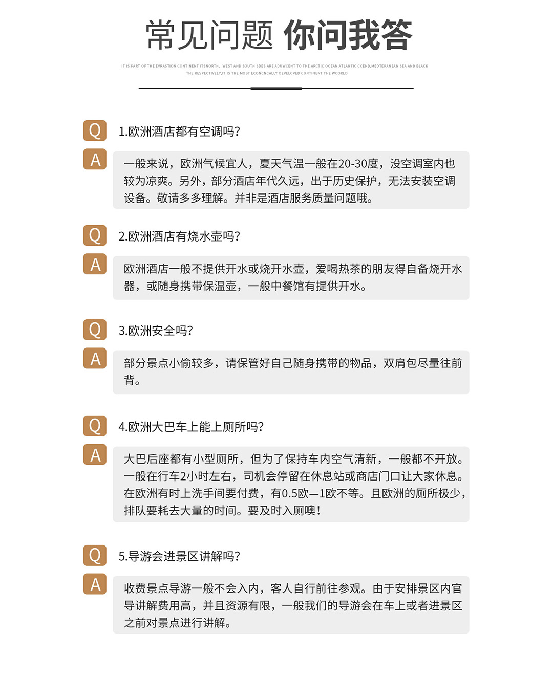 ②欧洲酒店皆不提供牙刷,牙膏,拖鞋,请您准备好日常用品。