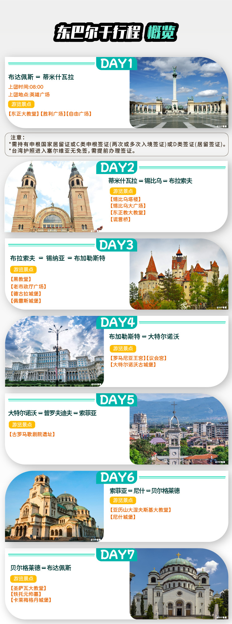 ④ 为了避免景点前过于拥挤,欧洲多数城市的大巴停车处离景点较远,不允许司机随便停车,违者会被高额罚款,有时上下车位置离景点会有一段距离, 敬请广大团员理解。